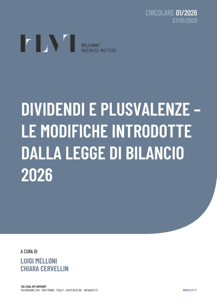 Con la presente Circolare desideriamo aggiornarvi in merito all’assetto definitivo delle disposizioni in materia di tassazione dei dividendi e delle plusvalenze percepiti da imprenditori o da società o enti residenti, a seguito dell’entrata in vigore della Legge 30 dicembre 2025, n. 199 (“Legge di Bilancio 2026”).
