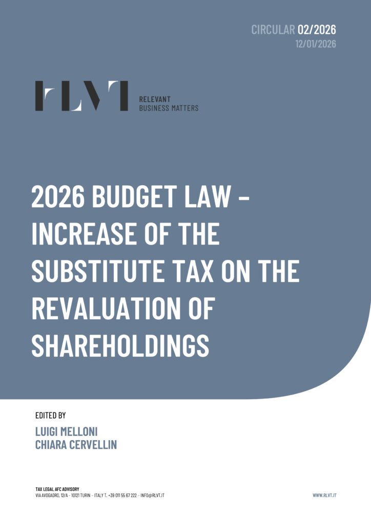 We would like to highlight the amendment introduced by Article 1, paragraph 144, of Law No. 199 of 30 December 2025 (the “2026 Budget Law”), which provides for an increase from 18% to 21% in the substitute tax rate applicable to the revaluation of the tax cost of shareholdings.