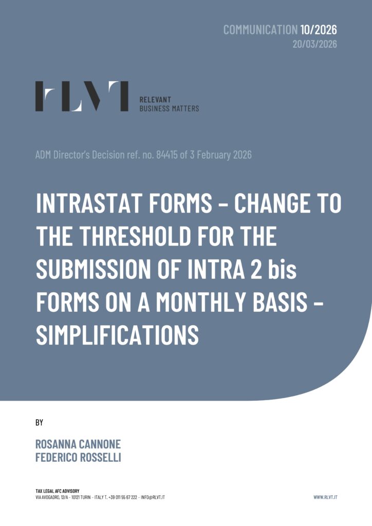 The Customs and Monopolies Agency, in conjunction with the Revenue Agency and the National Institute of Statistics (ISTAT), has established, through Decision No. 84415 of 3 February 2026, an increase in the threshold for the submission of forms relating to Intra-Community purchases of goods (INTRA-2 bis forms) on a monthly basis.