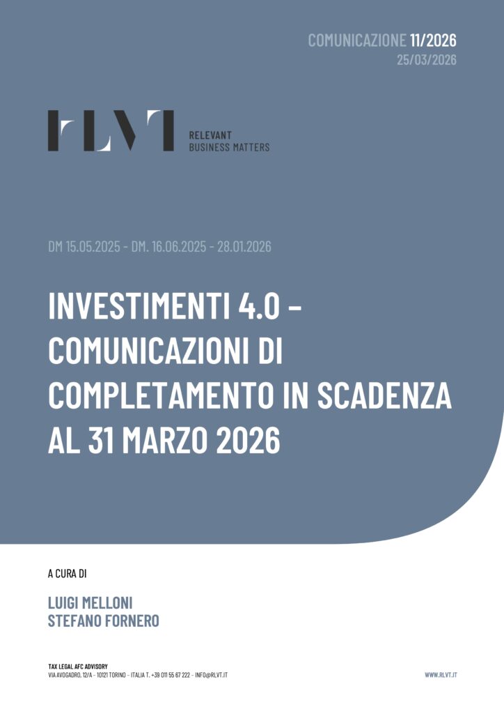 Per completezza, si ricorda che gli investimenti effettuati nel cosiddetto “termine lungo” (ossia completati entro il 30 giugno 2026 a fronte di ordine accettato e acconto del 20% entro il 31 dicembre 2025) dovranno invece essere oggetto di comunicazione di completamento entro il 31 luglio 2026.