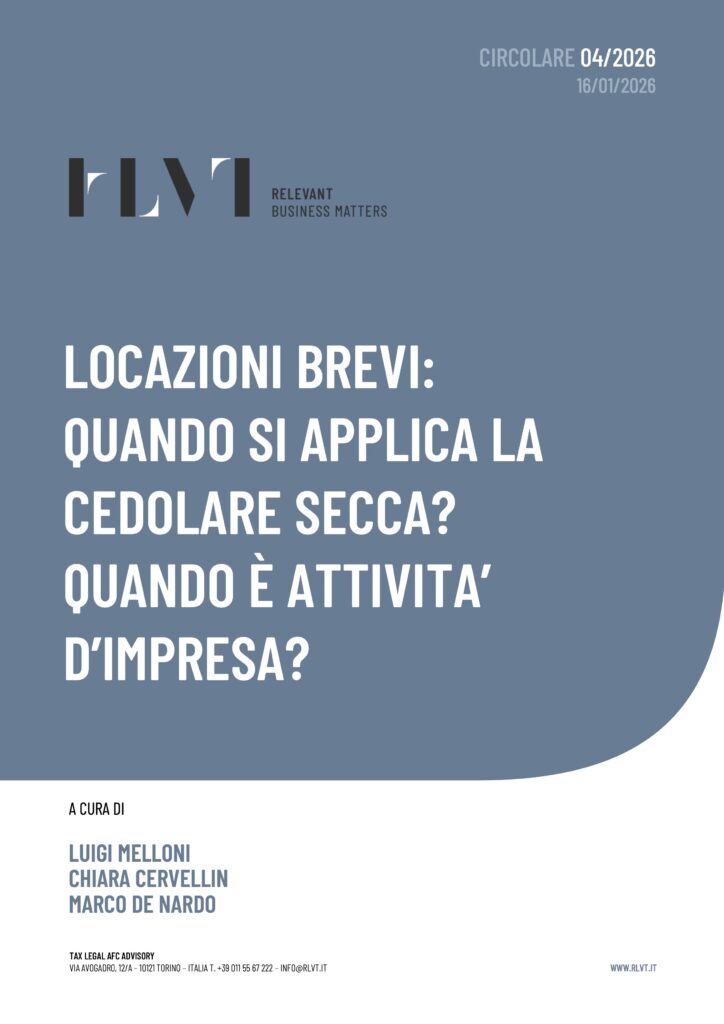 Con la presente Circolare segnaliamo un’importante modifica alla disciplina fiscale delle locazioni brevi, introdotta dall’art. 1, comma 17, della Legge 30 dicembre 2025, n. 199 (“Legge di Bilancio 2026”), pubblicata in G.U. il 30 dicembre 2025 ed entrata in vigore il 1° gennaio 2026.